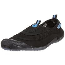 This boat shoe style water shoe has a toe and heel bumper for extra protection. Features a clear outersole that is anti-slip and non-marking a breathable water flow mesh and stretch neoprene upper and a pull tabs for easy-on/off.